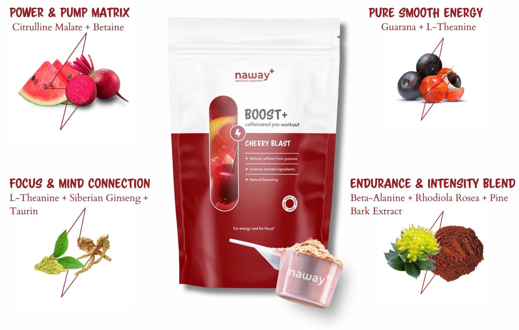 Boost+ is a vegan pre-workout for energy¹ and focus²